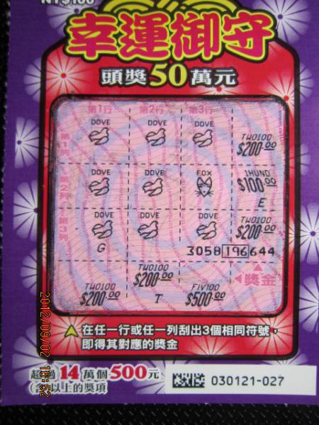 討論版列表 » 刮刮樂討論版 » [分享] (09-03) 幸運御守 EGT 回應本話題 發表新話題