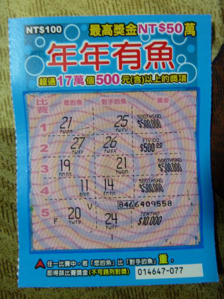 討論版列表 » 刮刮樂討論版 » [分享] (09-08) 年年有魚-魚沒多重 回應本話題 發表新話題