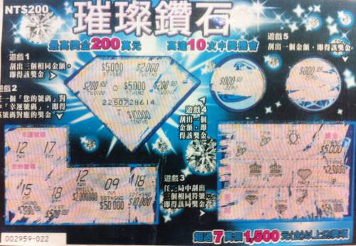 討論版列表 » 刮刮樂討論版 » [分享] (09-21) 璀璨鑽石022頭獎 台北士林飛來發 根據店員訴說並不是像媒體說的那樣誇張 很單純的就一個大學生刮第一張沒中第二張就中200萬了