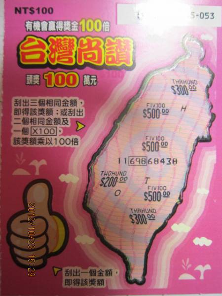討論版列表 » 刮刮樂討論版 » [分享] (10-23) 台灣尚讚 THO 回應本話題 發表新話題