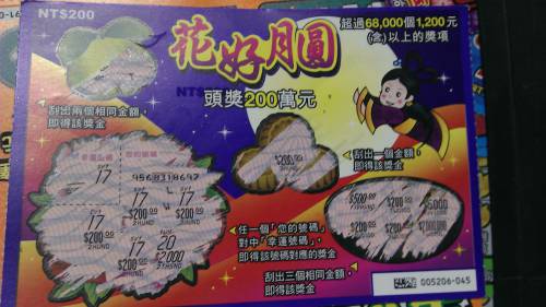 討論版列表 » 刮刮樂討論版 » [分享] (10-28) 〈花好月圓〉得到NTD1.2K的獎金