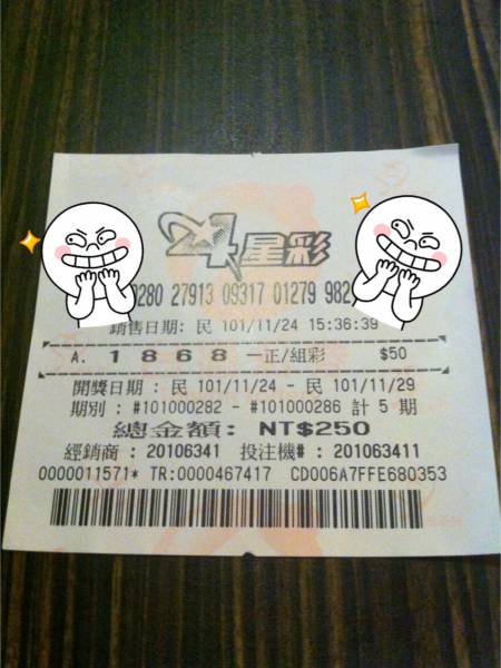 1868是我陸軍的梯次 前幾天突然想到就買了5期 中一萬元耶