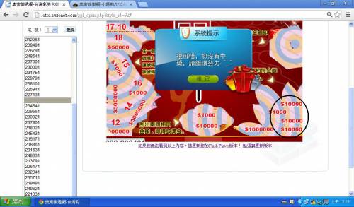 這部份是由於您的瀏覽器在載入刮刮樂Flash時,其內容已被放大,導致無法顯示出100%的內容(例如左下角的編號),而您畫圈處的右邊事實上是還有尾數的哦!