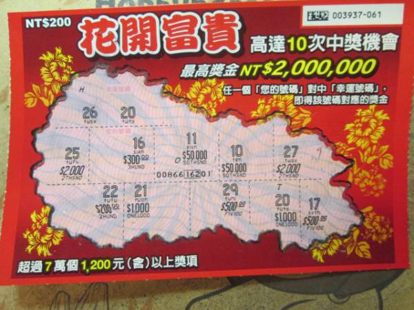 討論版列表 » 刮刮樂討論版 » [分享] (01-15) 花開富貴1000 回應本話題 發表新話題