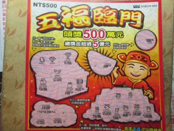 討論版列表 » 刮刮樂討論版 » [分享] (01-16) 五福臨門5000 回應本話題 發表新話題