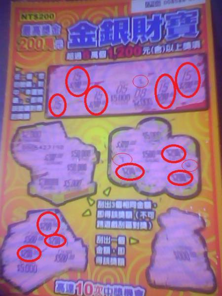 討論版列表 » 刮刮樂討論版 » [求助] (01-26) 金銀財寶008588 - xx5 中1200