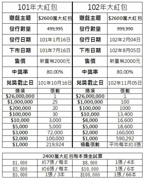 [分享] (01-31) 大紅包101 / 102年獎金對照&每本獎金分析
