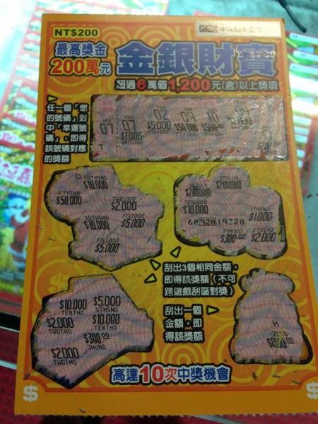 討論版列表 » 刮刮樂討論版 » [分享] (02-07) 金銀財寶THO 回應本話題 發表新話題