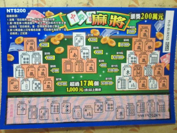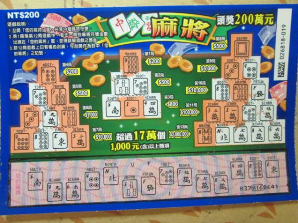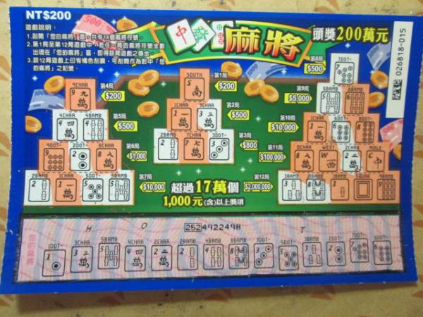 討論版列表 » 刮刮樂討論版 » [分享] (02-26) 麻將5中4 最高1000 回應本話題 發表新話題