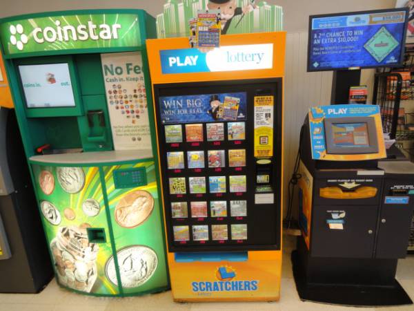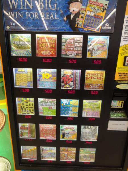 美國的刮刮樂擺在超級市場內~自動販賣機...所以無法選號