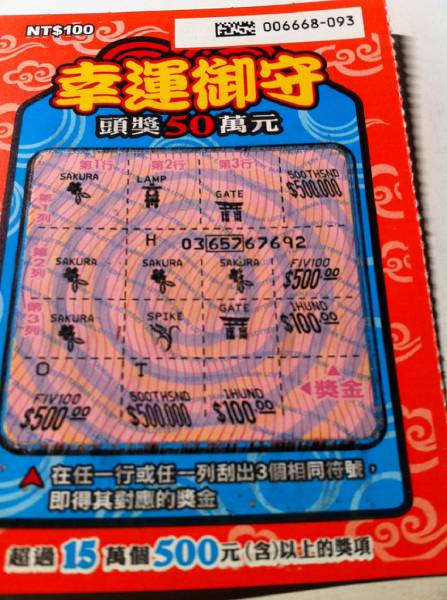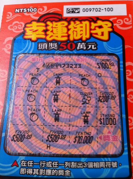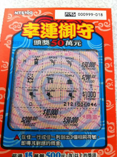討論版列表 » 刮刮樂討論版 » [分享] (03-06) 幸運御守,,,1000元.......再接再厲~ 回應本話題 發表新話題