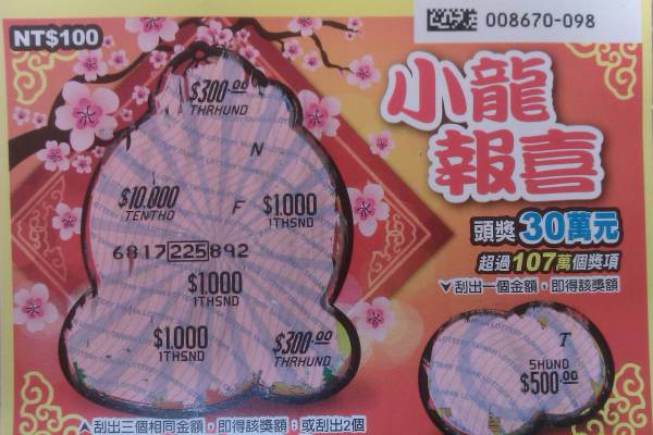 過年這陣子刮到小龍報喜~~刮98,99,100中2張,我貼這張98,99打龜,100中200