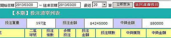 因為我都用自動投注,一次都20組,所以