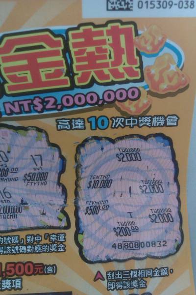 上次刮5福臨門野樹38中5000