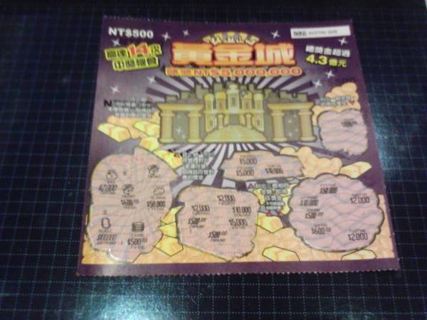 今午睡醒走到大廳看到ㄚ姐老板憂閒在看電視•心想昨晚會不會白等 ㄚ姐找我過去拿1張黃金城20號給我•輸我要付出代價•沒中我耳朵被彈5下 心想沒差怕她買張大烏龜 開刮的時候ㄚ姐在傍看我從右側刮到中間叭咘•ㄚ姐偷笑^^到左側看到金寶箱600元>