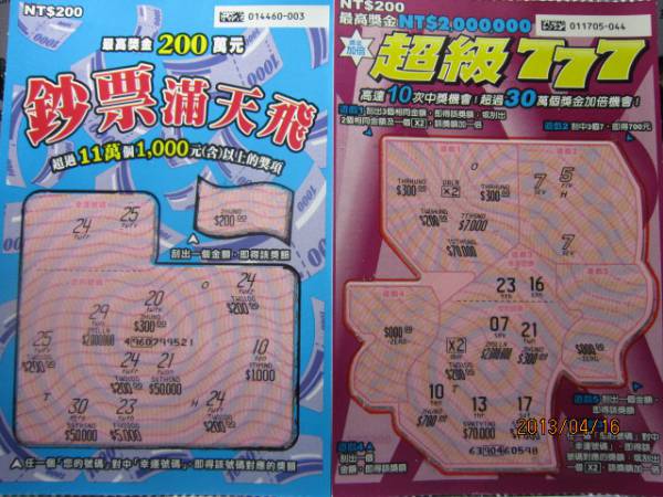 討論版列表 » 刮刮樂討論版 » [分享] (04-17) 鈔票滿天飛+超級777 THO 回應本話題 發表新話題
