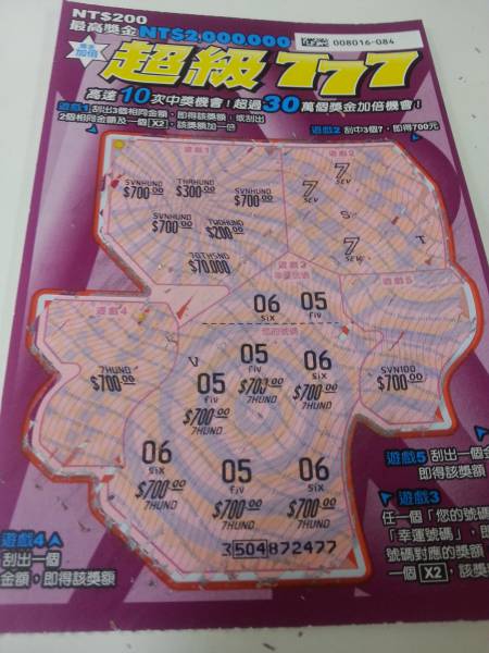 無聊出去賓果一下,等開講同時買一張七七七 074中200元 064中200元 在挑一長084 結果就.....