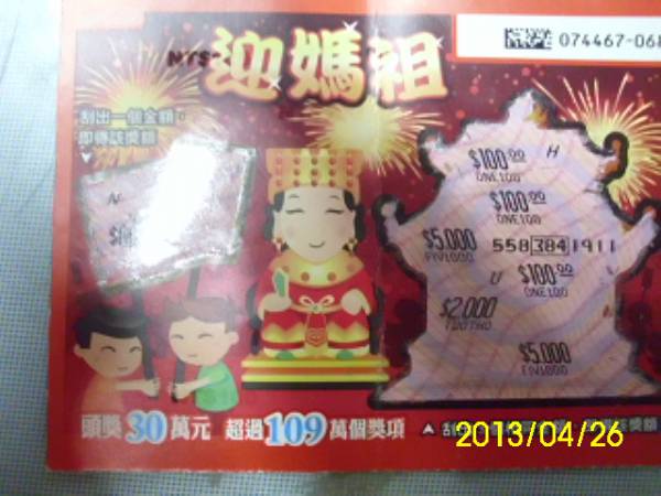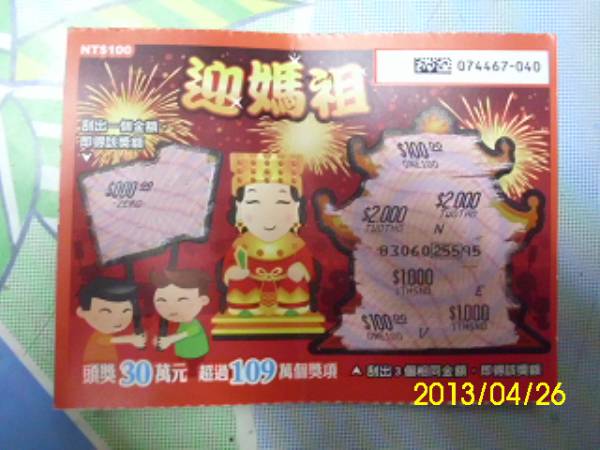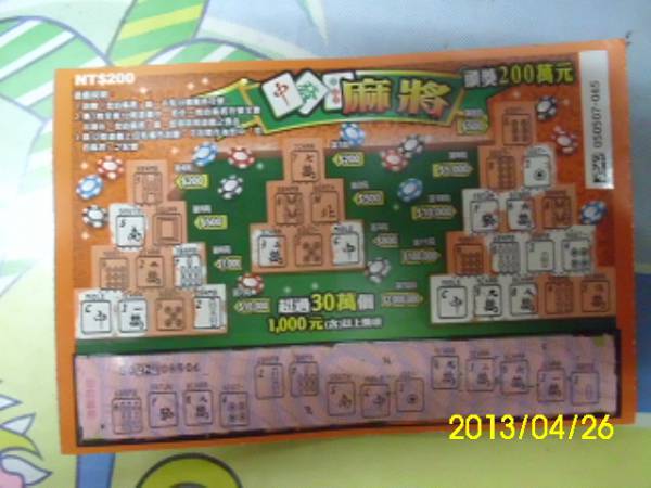 刮刮樂的解答 ---> 麻將--0元