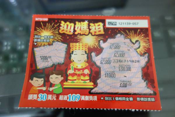 今天只是隨手買一張媽祖,心裡想說應該不會中,結果一刮出來還以為自己眼花呢。