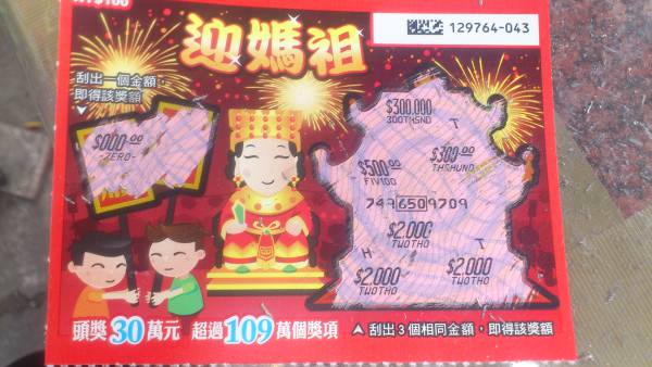 昨晚買1張黃金24K 沒中 恭禧中獎