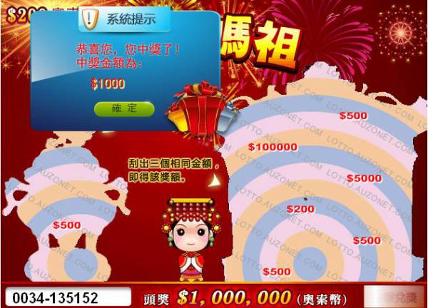 這款新的虛擬刮刮機率大約十張中8張 恭禧中獎,順利抱走彩金!