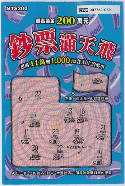 討論版列表 » 刮刮樂討論版 » [其它] (07-16) 重出江湖第一張 - 鈔票滿天飛THO 回應本話題 發表新話題