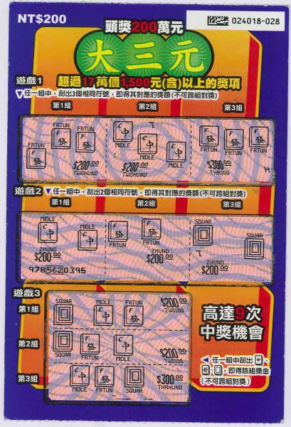 討論版列表 » 刮刮樂討論版 » [分享] (07-16) 重出江湖第二張 - 大三元TTH 回應本話題 發表新話題