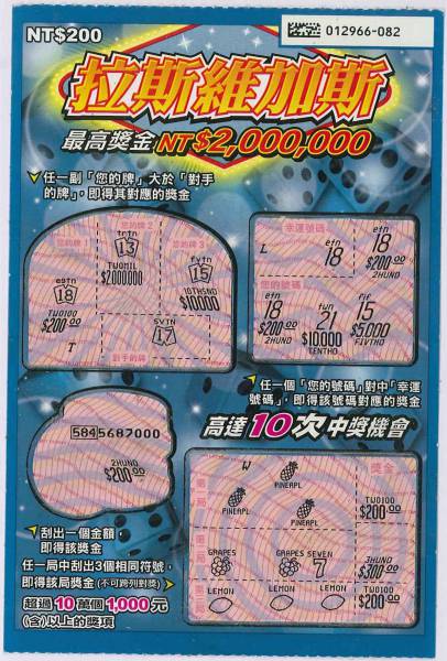 討論版列表 » 刮刮樂討論版 » [分享] (07-16) 重出江湖第三張 - 拉斯維加斯TWL 回應本話題 發表新話題