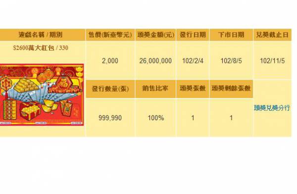 也不知道是哪一位阿婆阿公刮刮都不戴老花眼鏡或者是讓未成年小弟弟小妹妹買刮刮樂~也不看清楚上面有沒有中獎~就這樣把2600萬白白送給台彩