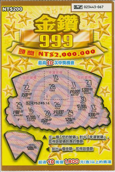 我玩了很久的〈金鑽999〉,結果只有一次1,800、