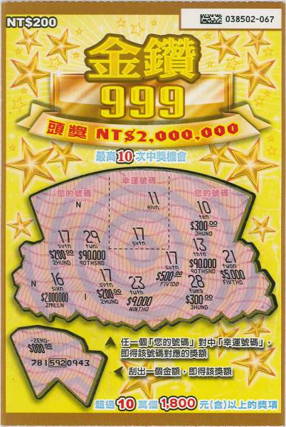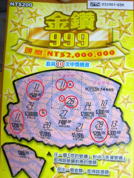 032901-039 NIN 900 今天九點店家關門前買一張, 選會中機率高的號碼,一張中