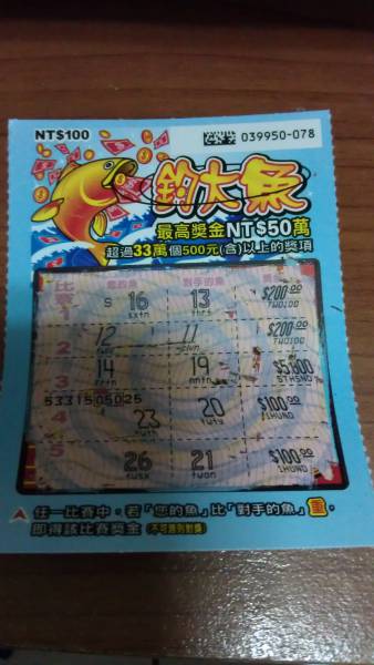 今天買了好多張都回本價,一直再換一張,突然一刮,第一次彈珠臺中五千FVT!