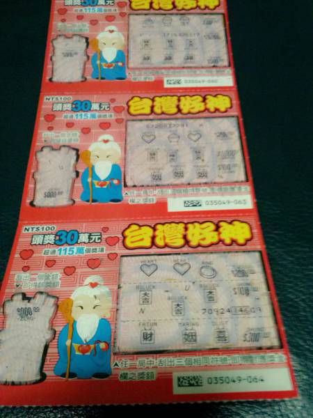機率什麼的 看看就好 連號三張連三中 雖然都小獎 不過還是很爽