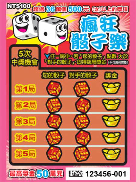 任一局中,若「您的骰子」點數大於「對手的骰子」,即得該局獎金(不可跨列對獎)