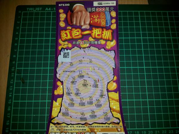 看老闆正在開新的刮刮樂,豪氣三百再拼