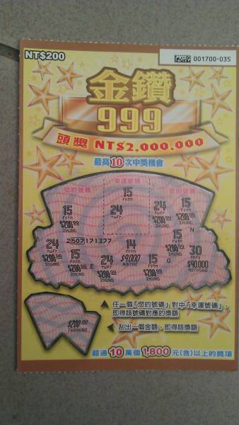 討論版列表 » 刮刮樂討論版 » [分享] (01-31) 2014-1-26 〈金鑽999〉之不記得第幾發1,800獎金 回應本話題 發表新話題