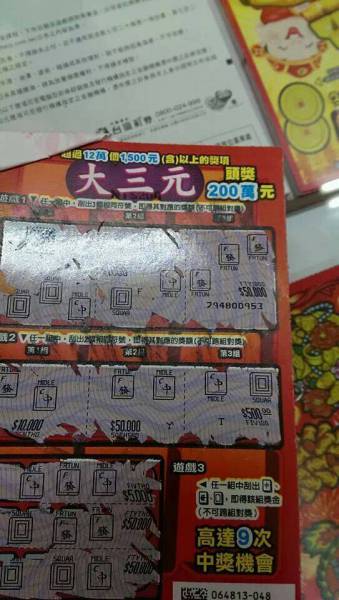他說他從頭到尾至少刮了三十萬元最大才中到一張十萬元