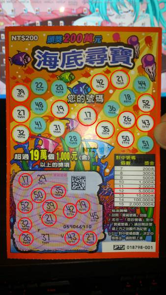 討論版列表 » 刮刮樂討論版 » [分享] (02-16) 幸運刮到的"海底尋寶" FVT 真的找到寶了 回應本話題 發表新話題