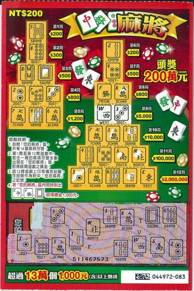 討論版列表 » 刮刮樂討論版 » [分享] (03-01) 2014-2-28 〈麻將〉之幸好得獎者是我 回應本話題 發表新話題