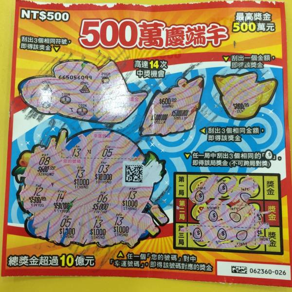買了兩張。。。第一張中1000,第二張。。。。。。。。