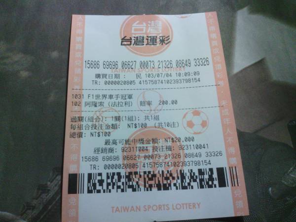 [分享] (07-04) 誰有在買賽車彩卷呢!