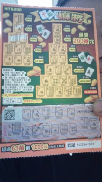 中午買一張麻將中獎3OO元,連晚上買麻將兩張另一張中獎8OO元,小賺5OO元。回家了!