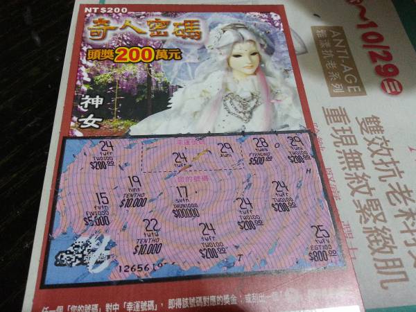 昨天才上市布袋戲主題的200塊錢刮刮樂