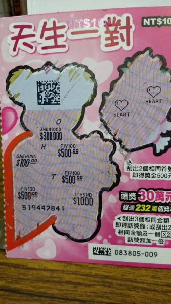 大大很好命啦!每年出情人節的刮刮樂,中獎超過500元以上(含1000元)