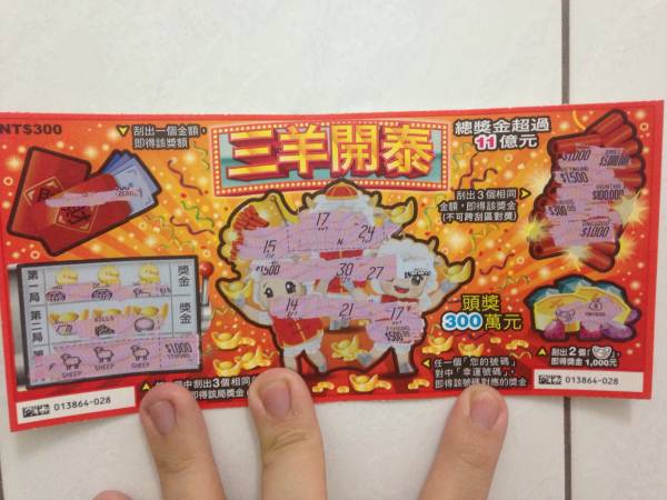 討論版列表 » 刮刮樂討論版 » [分享] (02-21) 2015.2.20. 《三陽開泰》之額外來個九羊啟泰