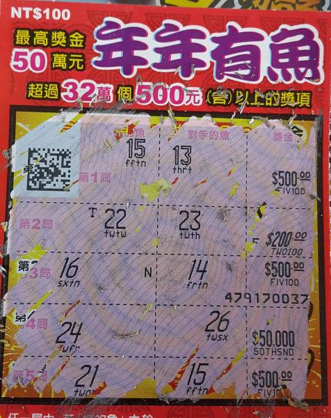 今天開工就去買了2張 結果小賺2K5 釣魚100的中1仟五