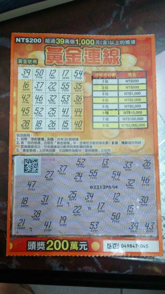 討論版列表 » 刮刮樂討論版 » [求助] (02-27) 第0080期 黃金連線 TTH(媽媽挑的)