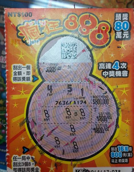 討論版列表 » 刮刮樂討論版 » [分享] (04-13) 100元的刮刮作作愛心換到1600的獎金