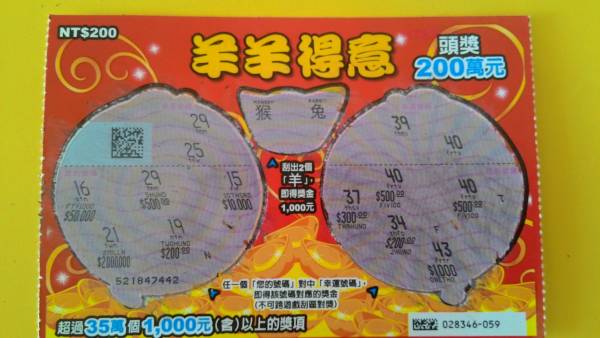 我經不起他的洗腦之下,象徵性買一張200元的«羊羊得意»,如主題,真的被我刮中FTN,真開心