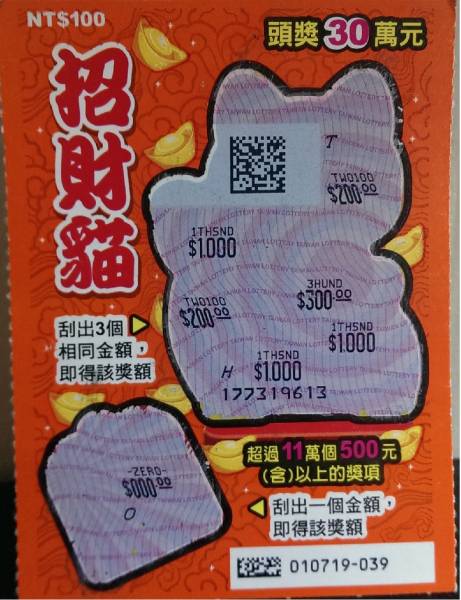 如主題,昨晚在常去彩券行,刮中THO